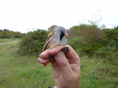 The Great Northern Diver pictured above,the only Diver of any species I have seen on the Broadwater, was another 'first' in what has been an outstanding Autumn at Holme. The few minus points have included picking a dead Short Eared Owl off the main road from Hunstanton , and not managing to connect either with a yellow Browed warbler this year, or the Juvenile Pallid Harrier seen at Holme. Against this the Arctic warbler stayed long enough to give excelent views, and where better to see another 'lifer'! The Red Flanked Bluetail and the Wood Warbler were Norfolk ticks, and the long staying Red Necked Phalarope completed a double, having seen the previous bird in 2005. Icterene Warbler Barred Warblers and Wryneck all posed in the hand and were supported by good numbers of Redstarts,Pied and Spotted Flycatchers, Winchats and several Ring Ouzels and a Great Grey Shrike.Short Eared Owls hunted the marsh and 2 were seen far out to Sea on 1 seawatch, as well as a peregrine passing rather closer in.The sea has offered close views of little Auks on several dates, an amazing 1 day passage of Kittiwakes and many other hours spent in the Dunes with Skuas, Shearwaters and Gannets all passing by. All 4 Suas obliged, including Spooned Poms and a Juvenile Long Tailed in the tally. A Sabines Gull passed close inshore, and all 3 Divers have appeared. It must have now moved on to winter as Velvet Scoters and Long Tailed Ducks have been picked up on more recent seawatches.